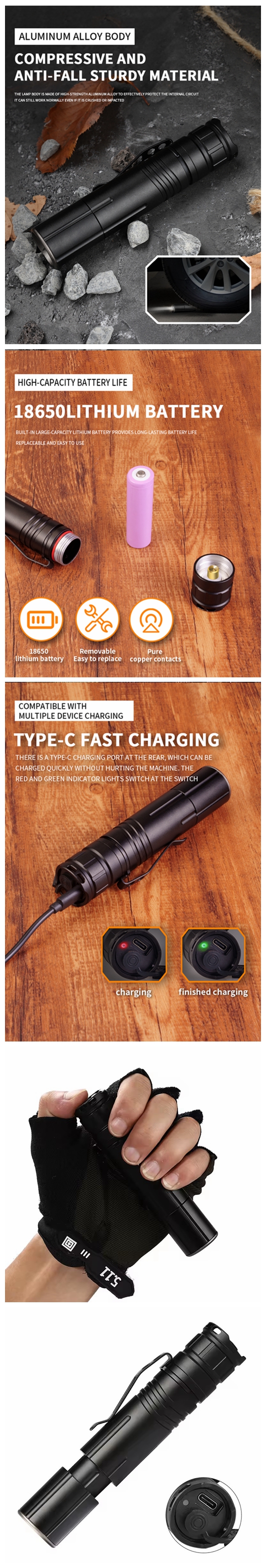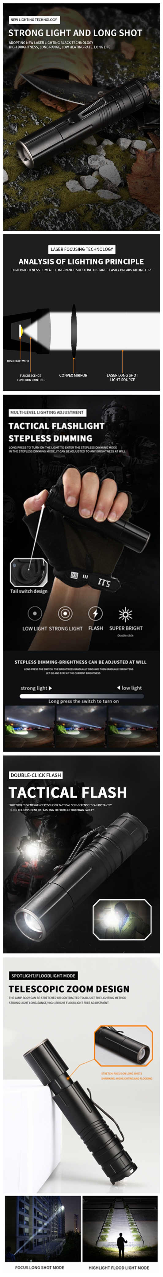 Gear 4: Low light - Strong light - flash - Double click to switch to super bright gear
