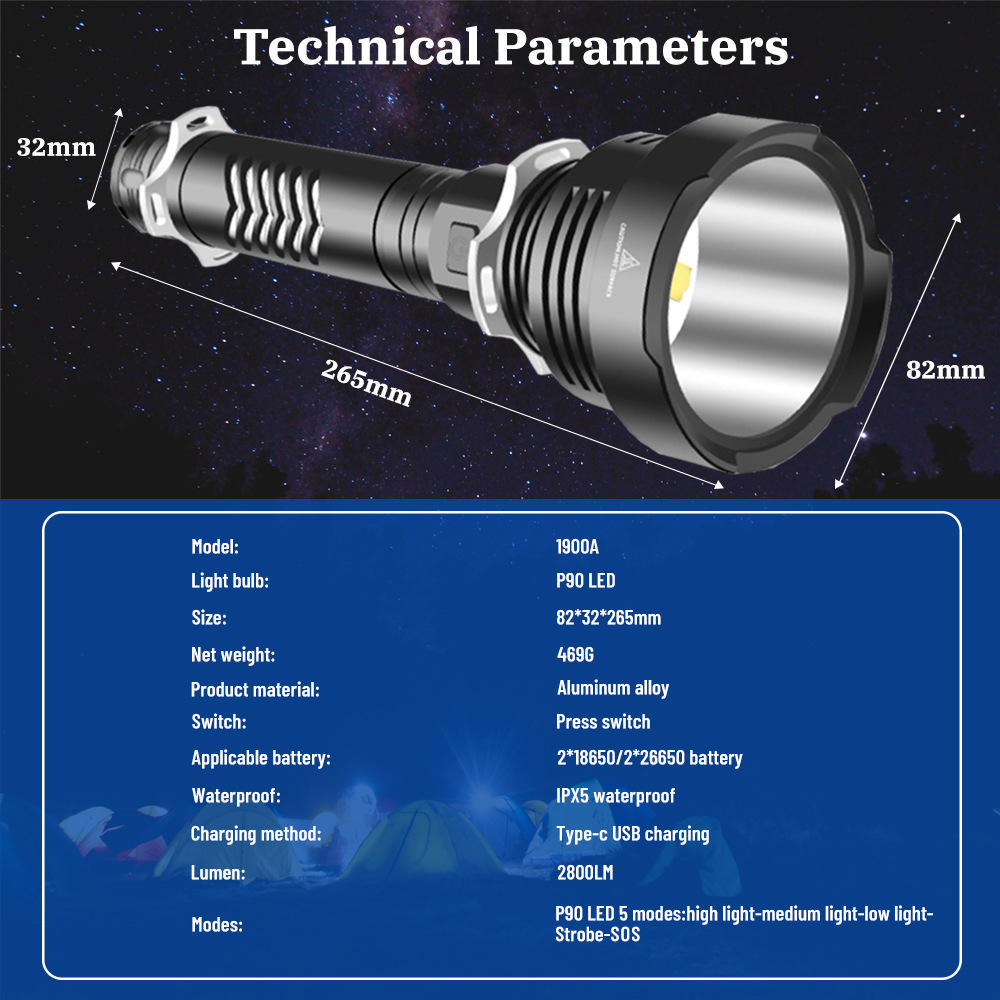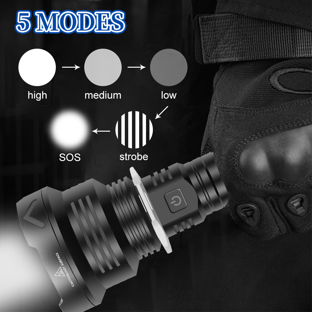 Gear position: 5 gears: strong light-medium light-low light-flashing-SOS (long press at any gear to shut down)