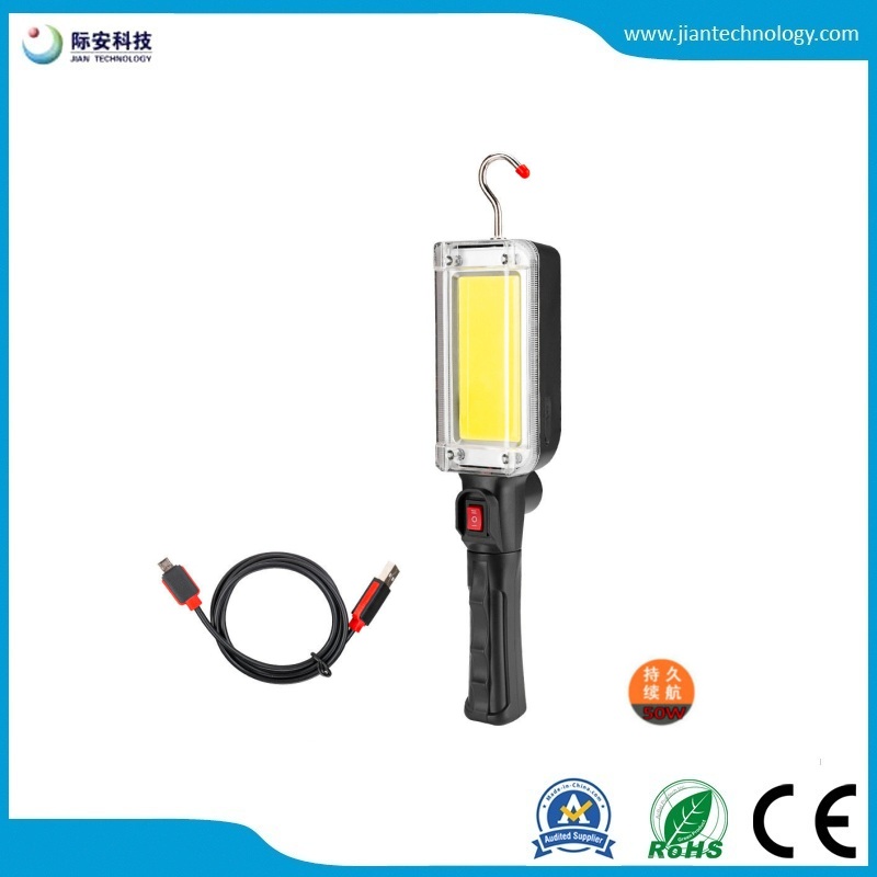 JFX16 COB led portable spotlight cob magnetic work lamp 18650 battery plastic case waterproof usb rechargeable camping lantern