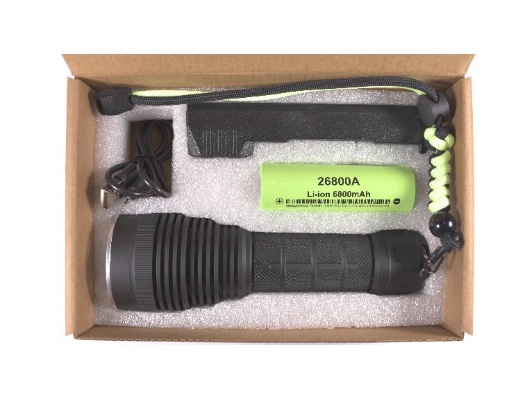Set: 530g (Flashlight, 26800 Battery, USB Cable, USB charger,