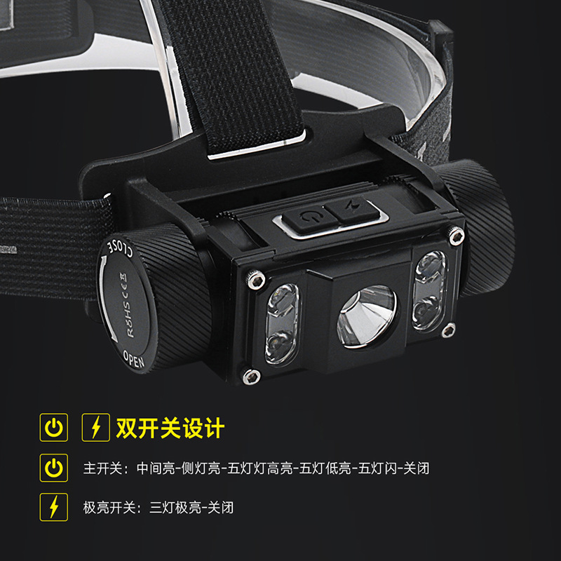 4. Extremely bright switch: five lights are extremely bright-off, main switch: middle on-side lights on-five lights high on-five lights low on-five lights flash-off