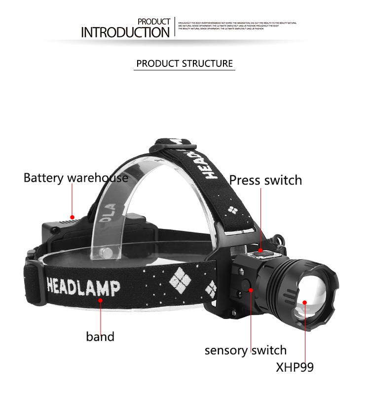 Gear position: 5 gears: strong light-medium light-low light-flash-SOS, any gear induction